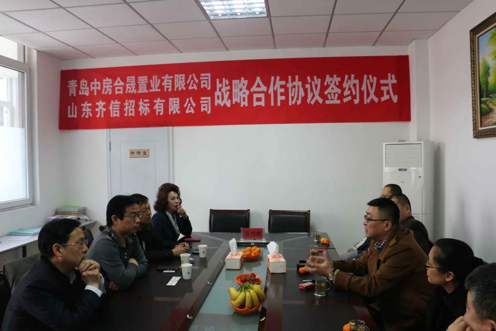 2014年4月11日,山東齊信招標有限公司青島分公司與青島中房合晟置業(yè)有限公司簽訂戰(zhàn)略合作協(xié)議,雙方正式建立全面戰(zhàn)略合作伙伴關系。