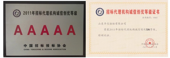 在2011年中國招標(biāo)投標(biāo)協(xié)會開展的第二屆誠信創(chuàng)優(yōu)活動中,我公司喜獲“誠信創(chuàng)優(yōu)5A等級”最高榮譽(yù)。 為加強(qiáng)行業(yè)自律,推進(jìn)誠信建設(shè),中國招投標(biāo)協(xié)會自2009年起組織開展了首屆誠信創(chuàng)優(yōu)活動。該活動采取企業(yè)自愿申報的方式,堅(jiān)持政府支持、協(xié)會組織、公開透明的原則,經(jīng)全國16個省級招標(biāo)投標(biāo)協(xié)會初審、中國招標(biāo)投標(biāo)協(xié)會誠信創(chuàng)優(yōu)工作小組復(fù)審、網(wǎng)上公示社會監(jiān)督等程序產(chǎn)生。本屆全國共有268家誠實(shí)守信、職業(yè)道德良好、業(yè)績突出的招標(biāo)單位進(jìn)入先進(jìn)行列,其中5A級機(jī)構(gòu)92家, 4A級機(jī)構(gòu)82家, 3A級機(jī)構(gòu)94家。
