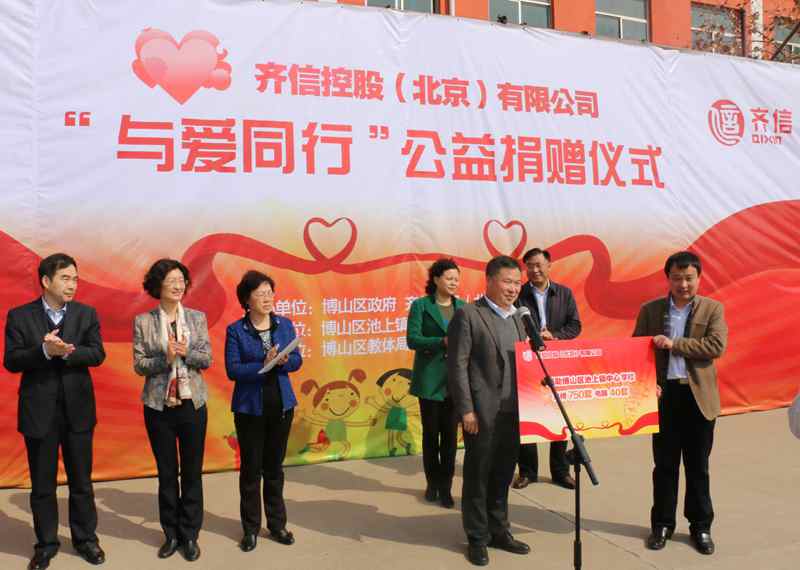 2. 3月4日,齊信控股(北京)有限公司聯合博山區政府,在池上鎮中心小學舉行“與愛同行”愛心公益活動,為該校捐贈課桌凳750套、計算機40套,員工與10名家庭困難、品學兼優的學生結成了幫扶對子。