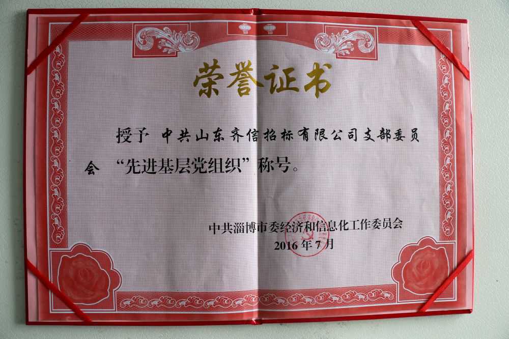 7. 7月中旬,經上級黨委研究批準,公司黨支部榮獲全市經信委系統“先進基層黨組織”稱號,淄博政府項目招標事業部一部榮獲“時代先鋒”崗稱號,夏金斌同志榮獲“優秀共產黨員”稱號,房永軍同志榮獲“優秀黨務工作者”稱號,并受到市委經信工委通報表彰。