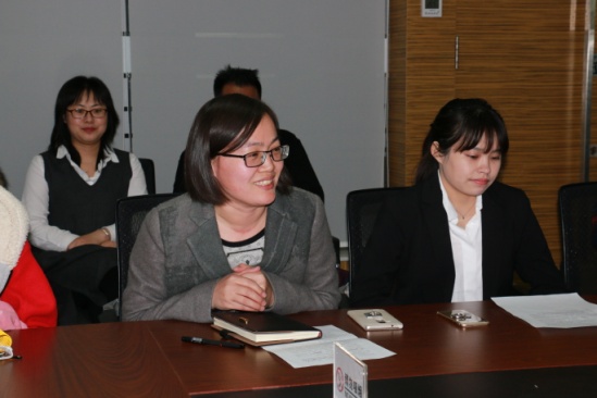 董事長對座談會上的意見和建議進行記錄。 女員工代表發言。