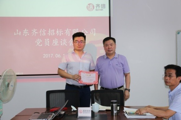 6月16日,山東齊信招標有限公司舉行“兩學一做”黨員座談會暨“時代先鋒”黨員頒獎會,會議傳達了高新區企業黨辦關于“兩學一做”常態化、制度化會議精神,并組織學習習近平總書記重要指示精神、中央和省市委座談會精神。中共山東齊信招標有限公司支部委員會全體黨員參加了會議。